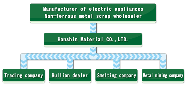 We are doing 100% recycling of non-ferrous metal. "Working toward society to conserve limited resources" and "Producing resources by recycling" are our motto.