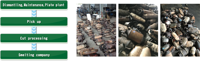 The used automobile catalyst, which is the main recovery item, contains platinum, palladium, and rhodium, which are recyclable precious metals.
