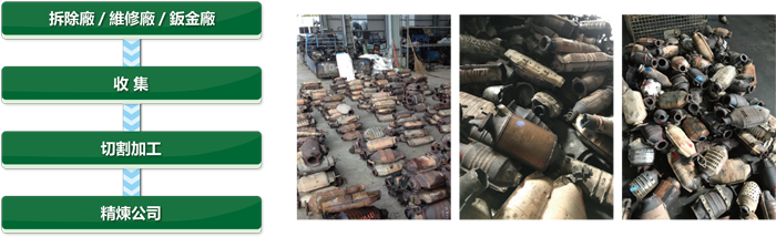 所使用的汽車催化劑,其是主要的恢復項目,含有鉑,鈀和銠,它們是可回收的貴金屬。